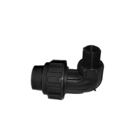 PE alkūnė, skirta vandens tiekimui, su 3/4 colio išoriniu sriegimu.