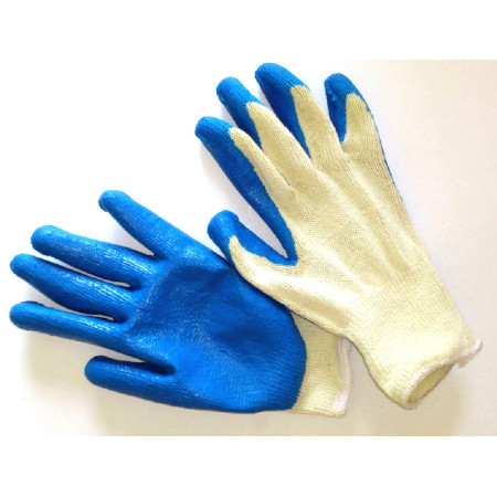 Darbo pirštinės iš balto poliesterio, delnas aplietas mėlynu lateksu. Patogios ir...